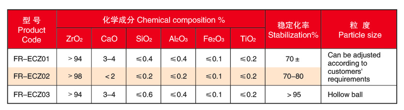本公司生产的氧化钙稳定氧化锆粉分为陶瓷级和耐火级两种