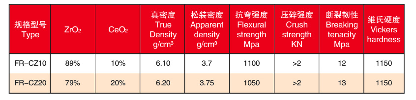 本公司所产Ce-TZP球(珠)具有:比重高、产品圆度好、规格尺寸误差小,表面光滑、 耐冲击、磨耗低、韧性好等特点。是研磨纳米材料的理想选择之一。
