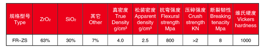 本公司所产韧化硅酸锆(ZS)珠具有:比重适中合理、产品圆度好、规格尺寸误差小,表面光滑、 耐冲击、磨耗低、韧性好等特点。是研磨低比重和低粘度纳米材料的理想选择之一。